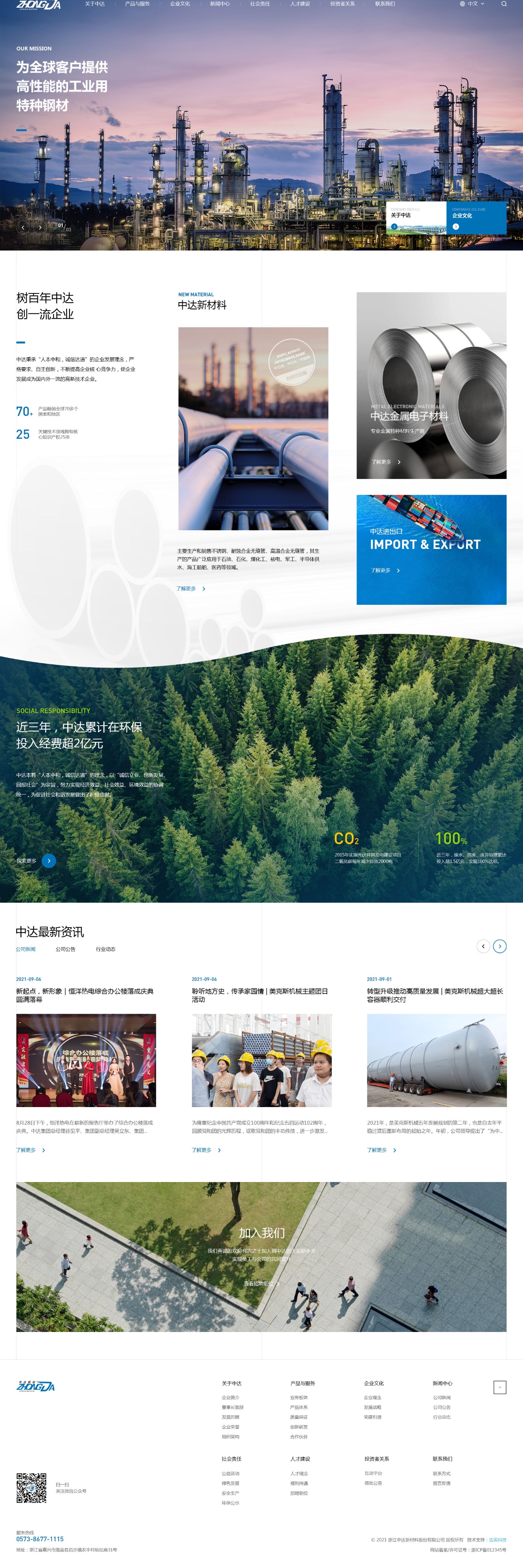中达联合控股集团股份有限公司(以下简称中达集团)位于浙江省嘉兴市海盐县百步经济开发区。产业布局特钢、货架、热电、建筑、国际贸易、装备制造、三产服务等;现有8家核心子公司,在马来西亚、新加坡、俄罗斯等设有海外分公司,现有员工超2000人,设有博士后工作站。目前,集团旗下四家子公司中达材料、中达新材、中达货架、恒洋热电是浙江省专精特新中小企业;中达材料与中达新材又分别在2022年和2023年获评工信部专精特新小巨人企业。